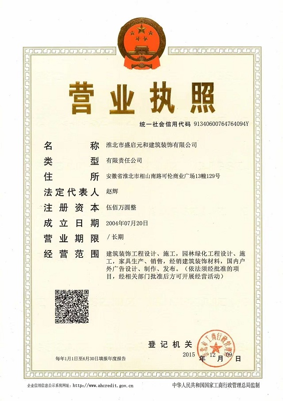 元洲裝飾營業(yè)執(zhí)照