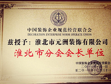 中國裝飾企業(yè)規(guī)范經(jīng)營聯(lián)合會(huì)茲授予“淮北市分會(huì)會(huì)長單位”